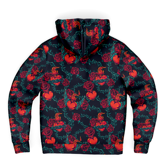 Fiery Hearts and Roses Zip-up hoodie features