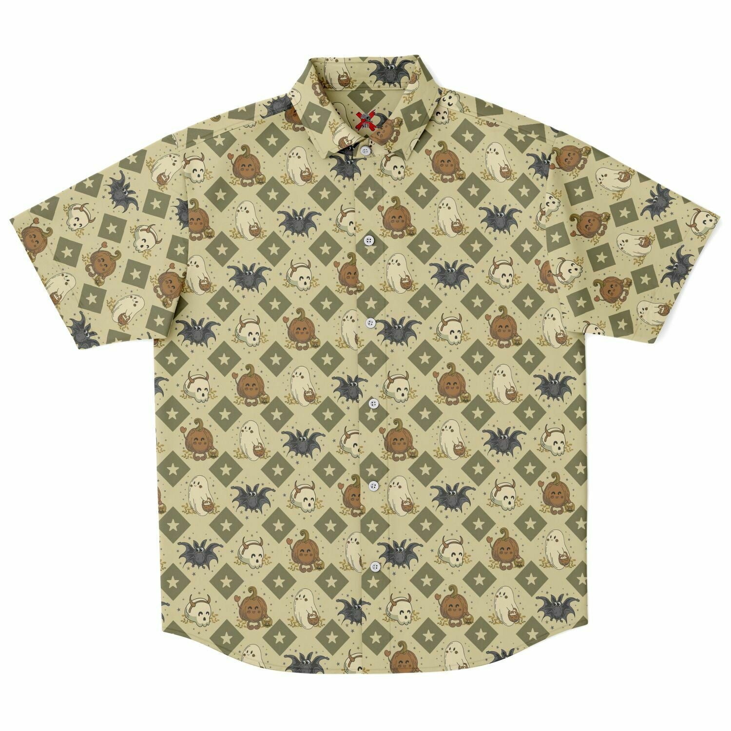 Prepare to embrace the spooky season with our Halloween Pattern Short Sleeve Button-Up Shirt. This unique shirt is the ultimate expression of Halloween spirit, perfect for your gatherings, parties, or just adding a touch of frightful fun to your everyday style.