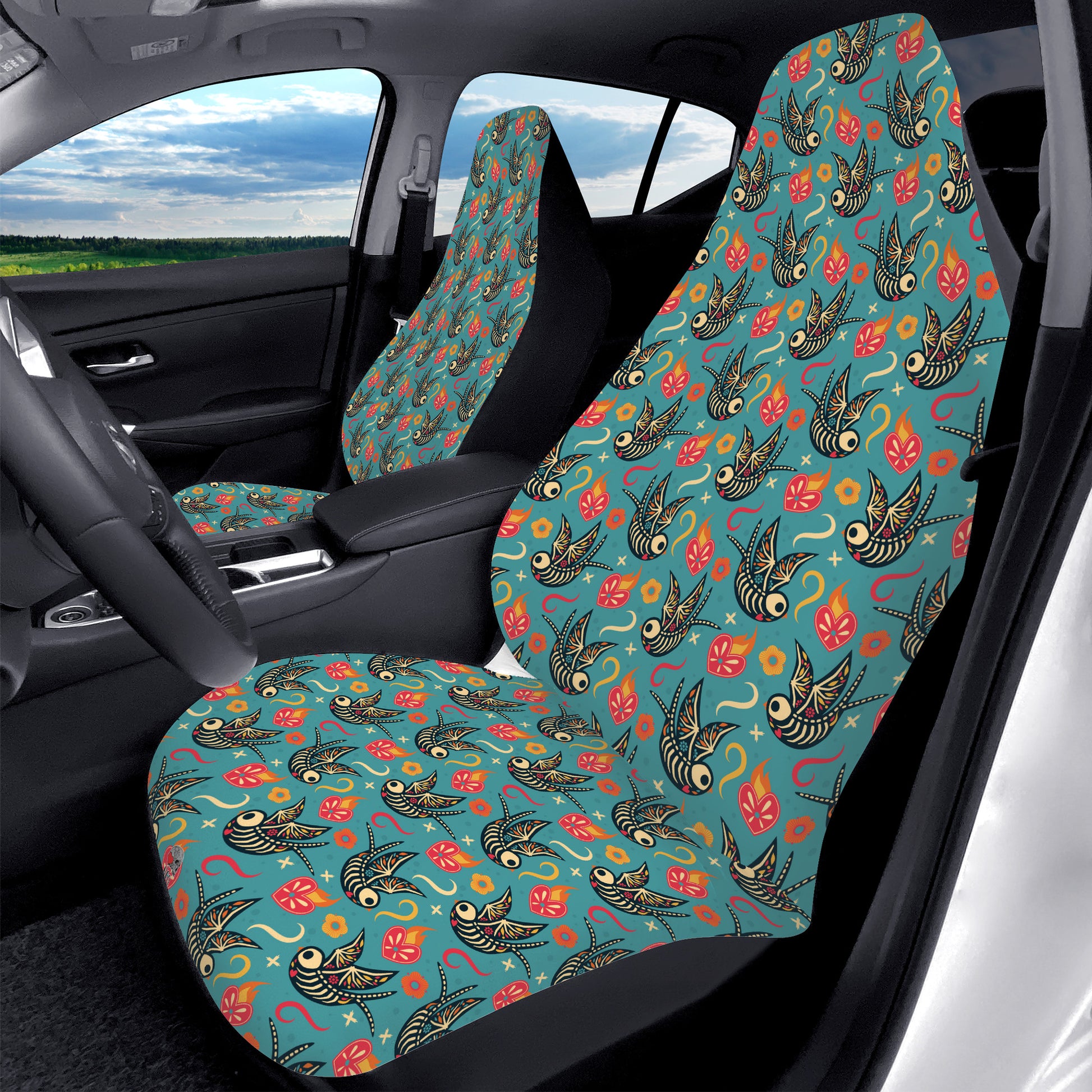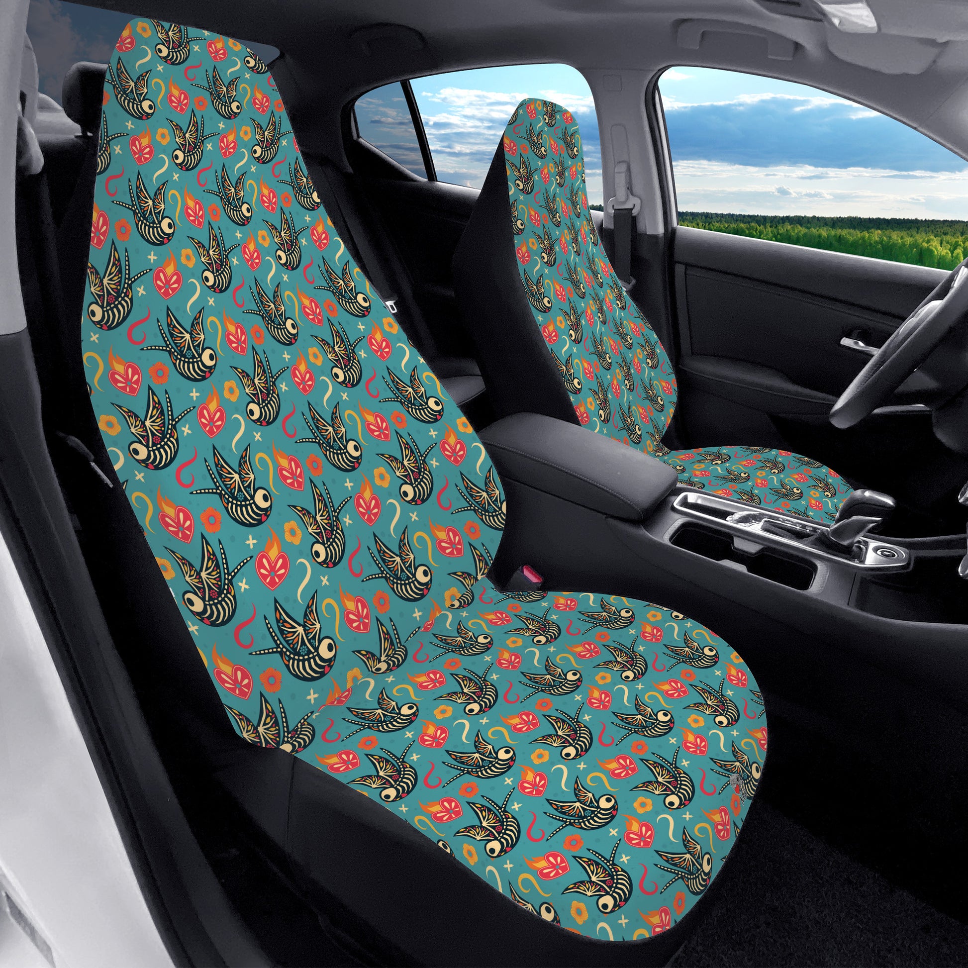Afterlife Bird car seat Covers feature Exclusive, original artwork by NeoSkull inspired by a day of the dead aesthetic. Each item is individually printed, cut, and sewn to ensure a flawless graphic with no imperfections. Perfect addition to your horrid car look.