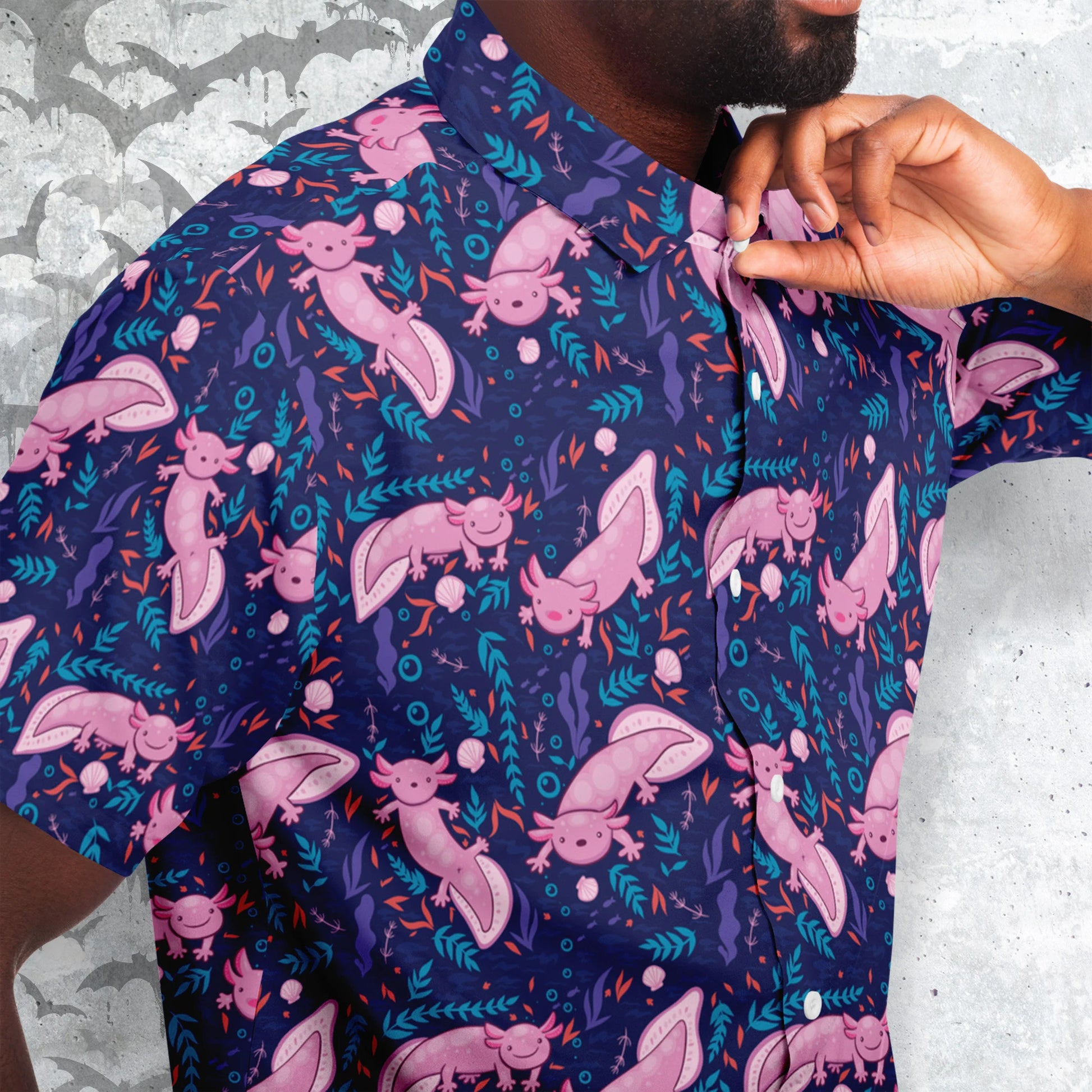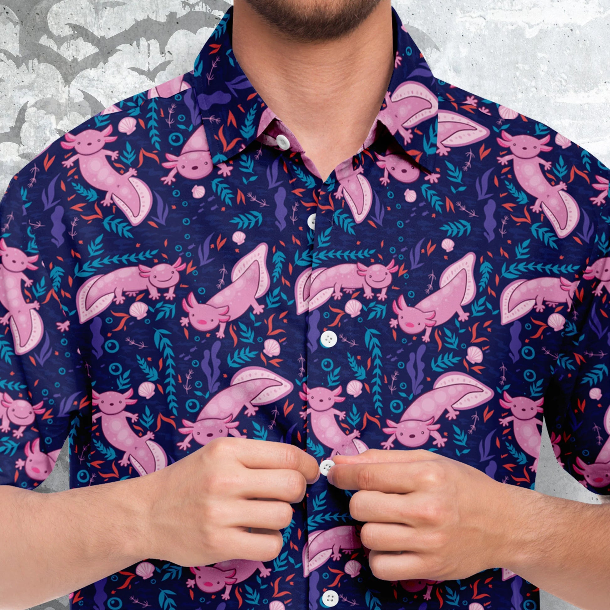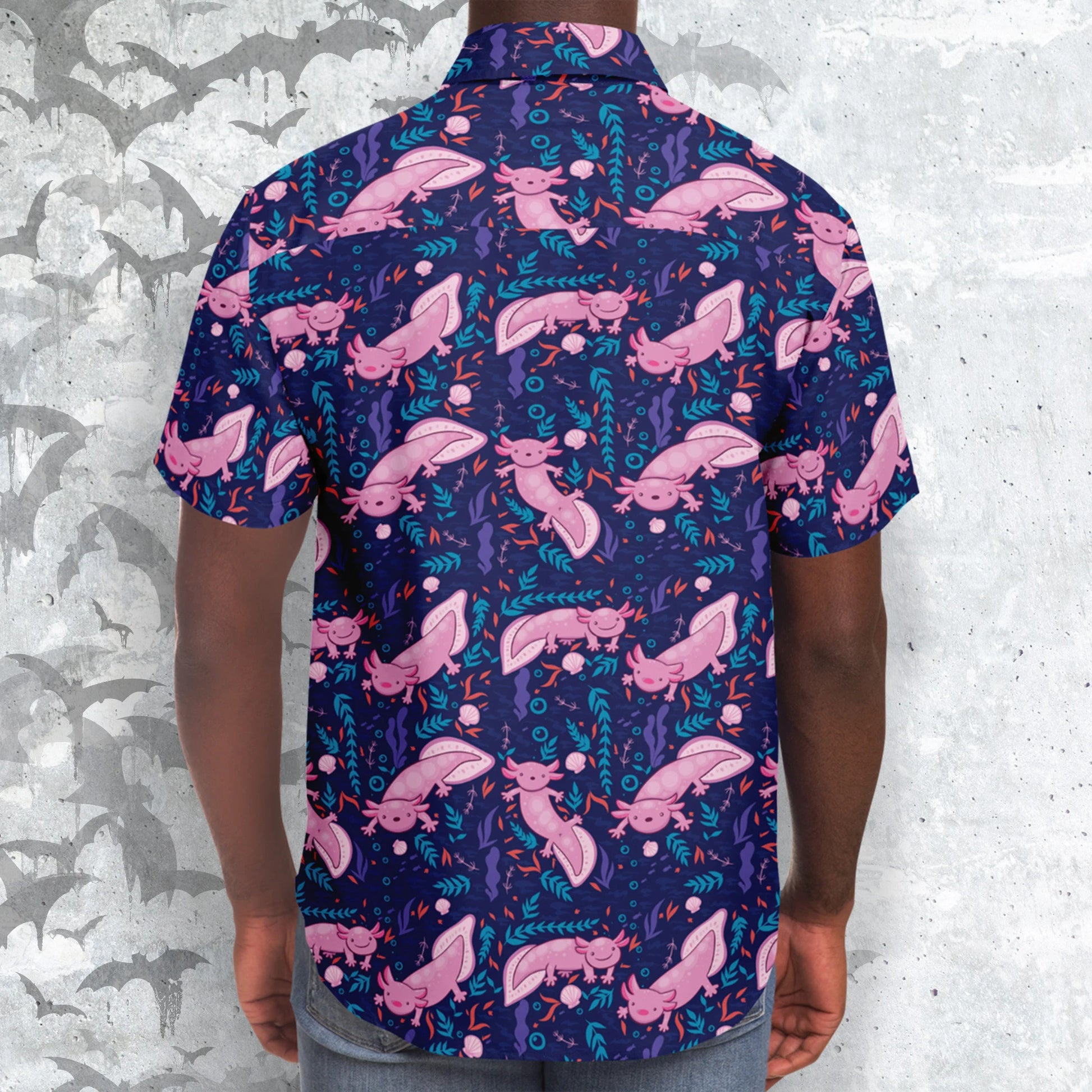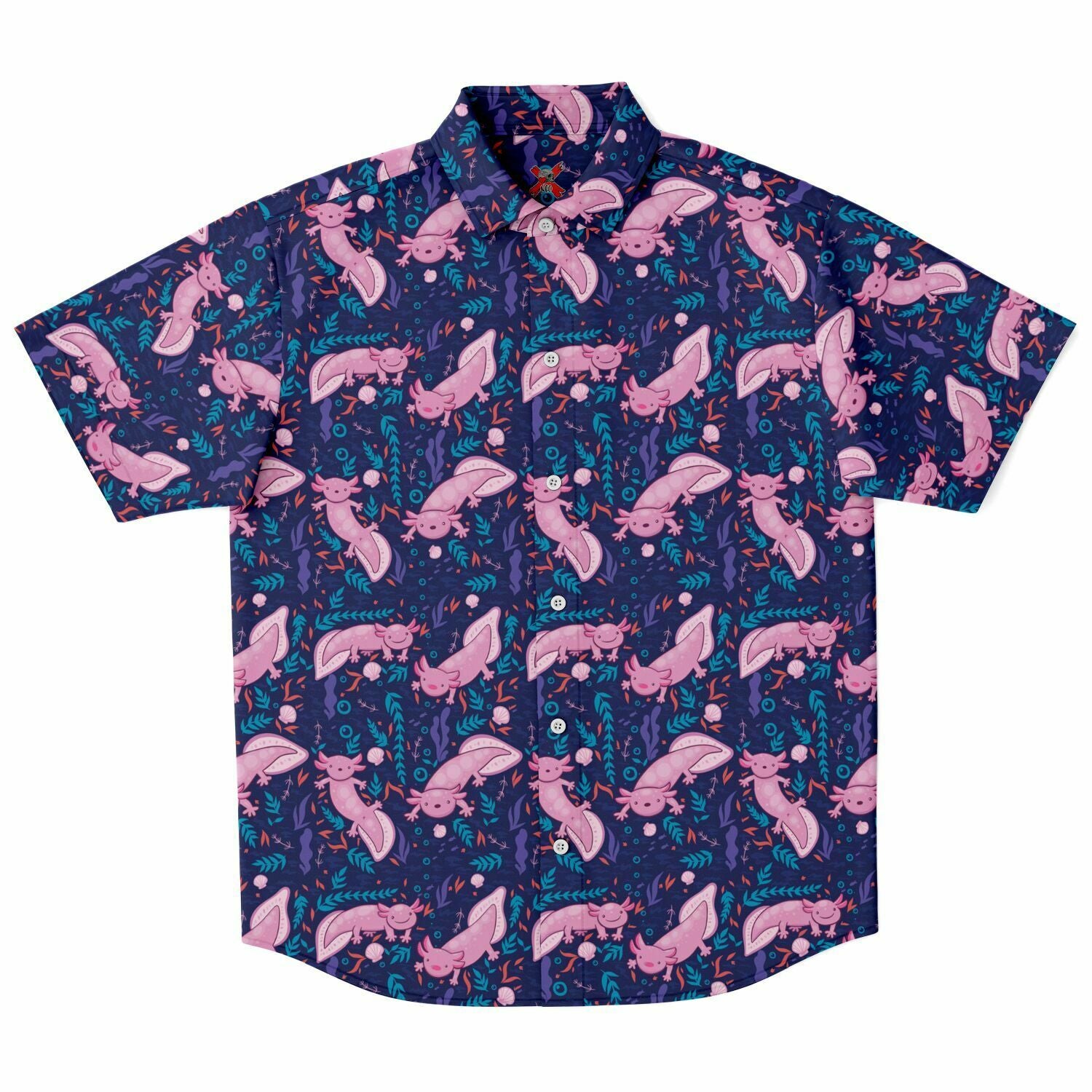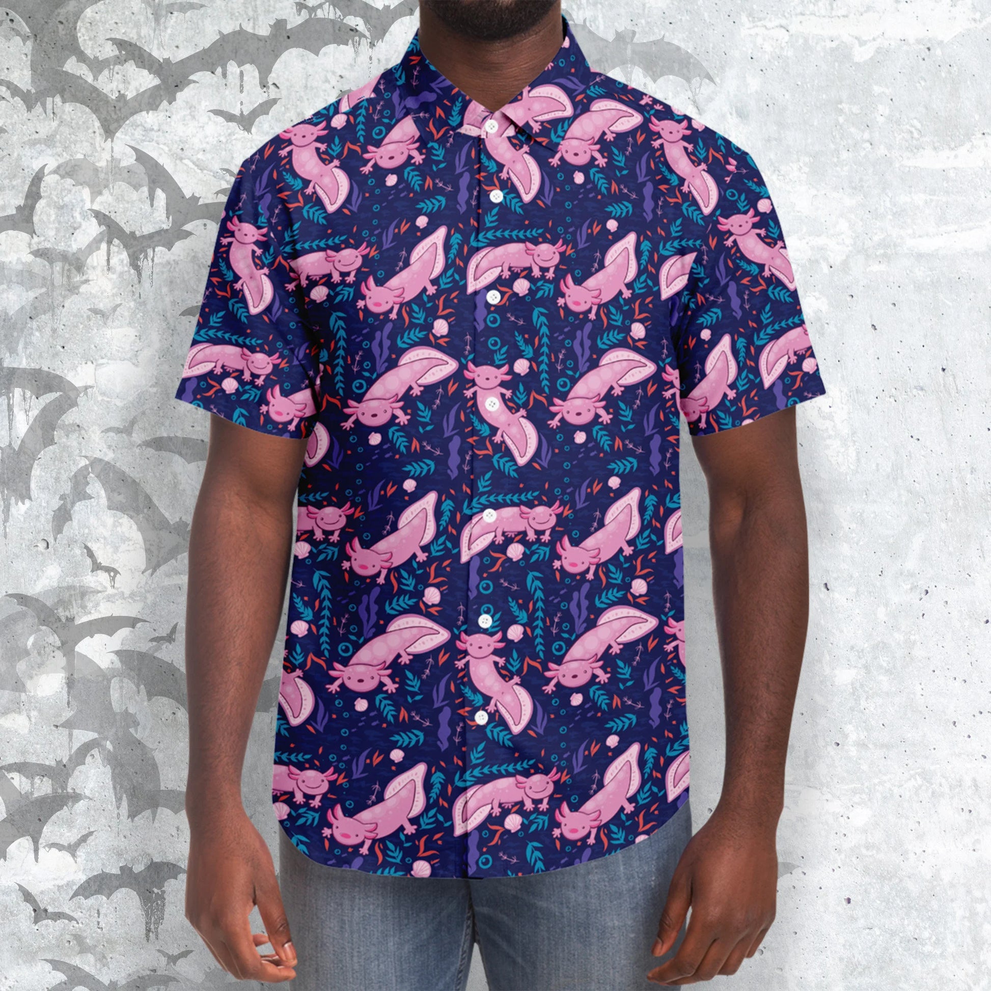 Unleash your inner aquatic enthusiast with our Axolotl Short Sleeve Button-Up Shirt. Designed to make a splash in the world of fashion, this unique shirt allows you to wear your love for these intriguing amphibians with pride. Whether you're heading to an aquarium, a summer party, or just looking to express your passion, this shirt has you covered.