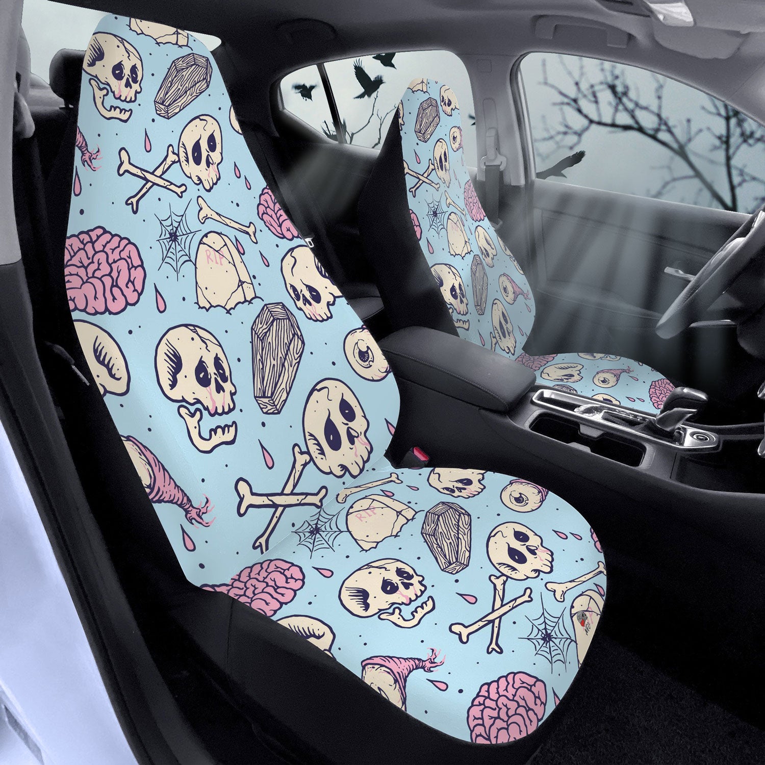 Blue Dream car seat Covers feature Exclusive, original artwork by NeoSkull inspired by a spooky cute aesthetic. Each item is individually printed, cut, and sewn to ensure a flawless graphic with no imperfections. Perfect addition to your horrid car look.
