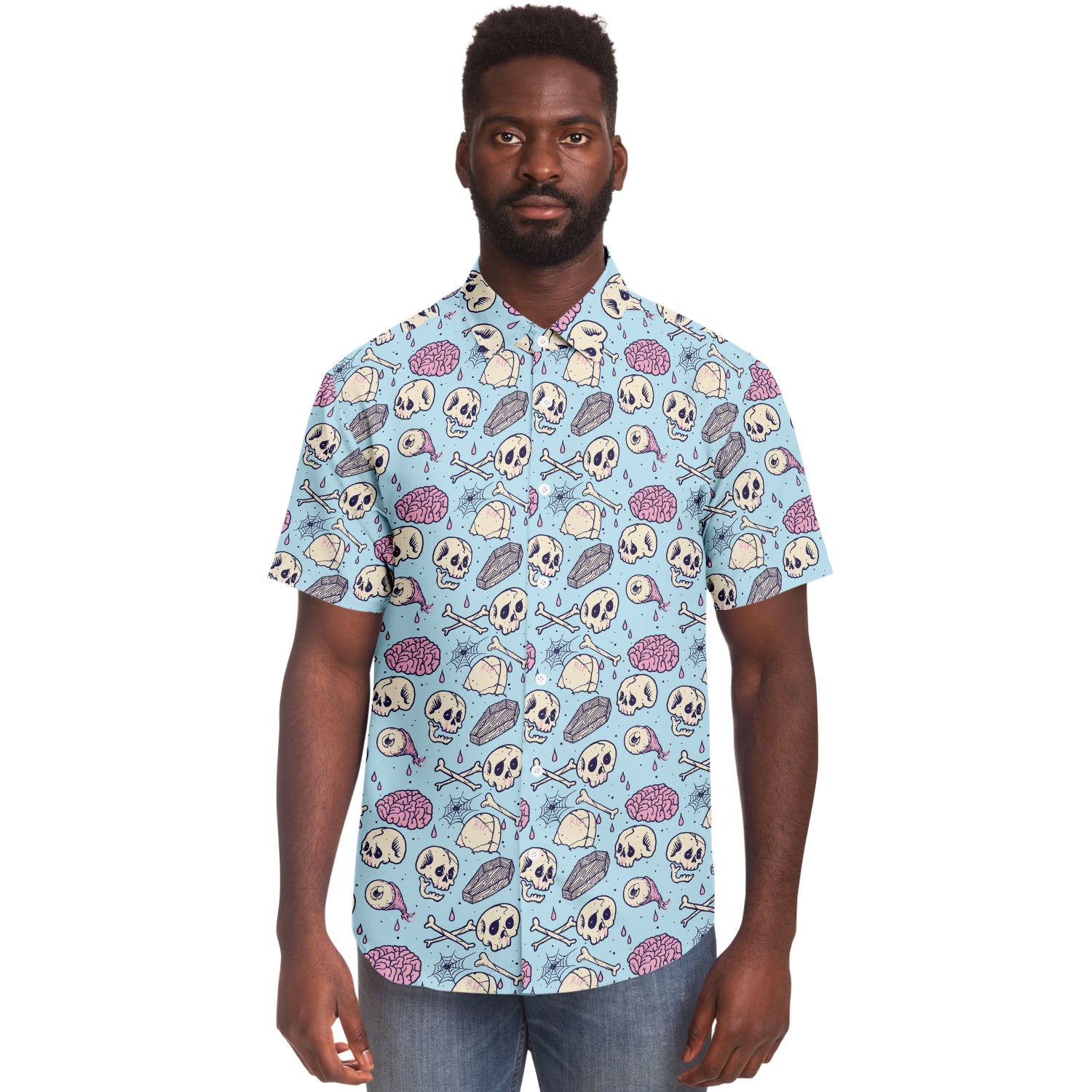 Stay cool with this fun printed short-sleeve button-down shirt. It comes in regular width and spread collar. Perfect for those dressier hot days.