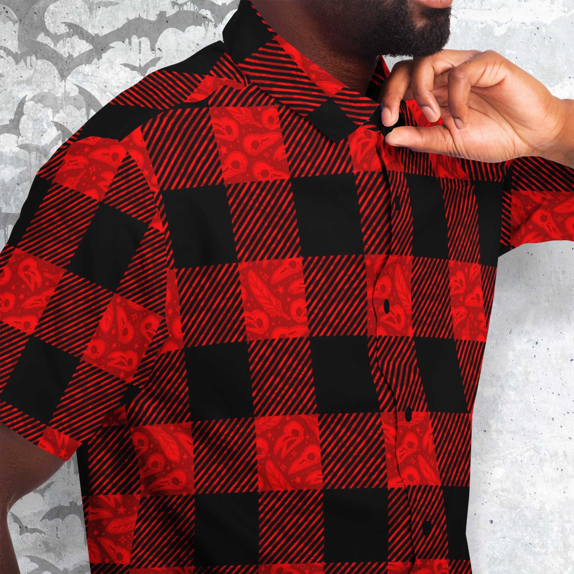 Our Buffalo Raven Plaid shirt features a classic plaid pattern infused with a touch of uniqueness, making it a fashion statement. It's perfect for those who want to stand out while embracing tradition.