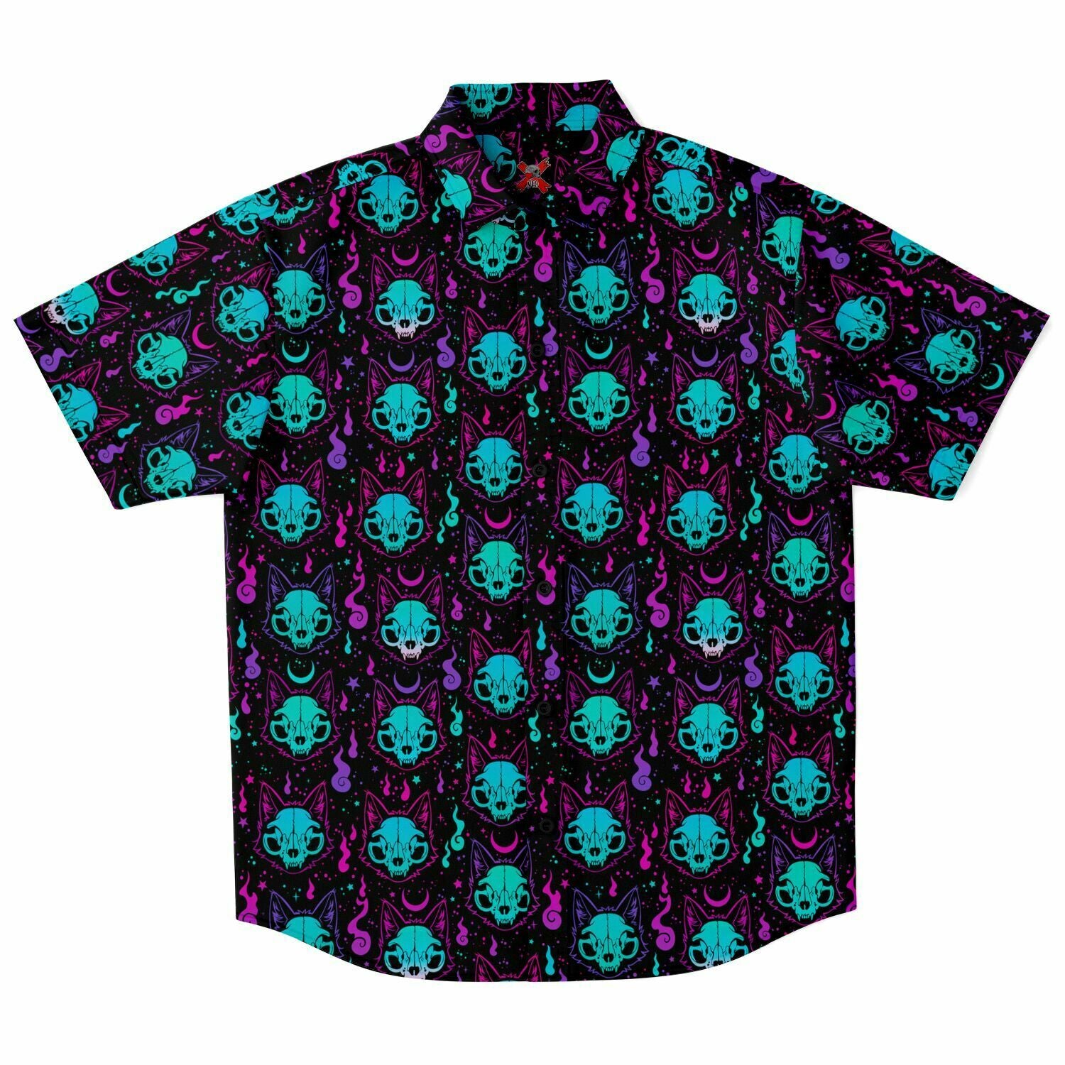 Let your love for feline companions shine through with our Cat Spirit short sleeve button-up shirt. Adorned with charming cat-themed designs, this shirt is a celebration of your bond with these enchanting creatures. Whether you're a cat enthusiast or just appreciate their elegance, this shirt allows you to wear your affection on your sleeve and showcase your unique connection with the feline world.