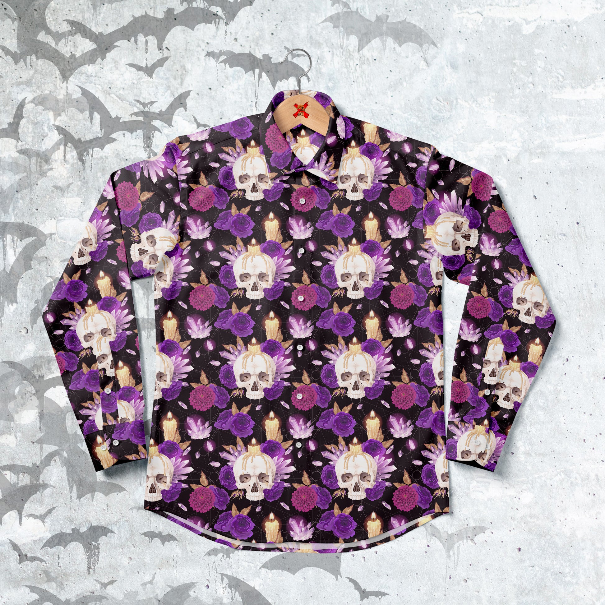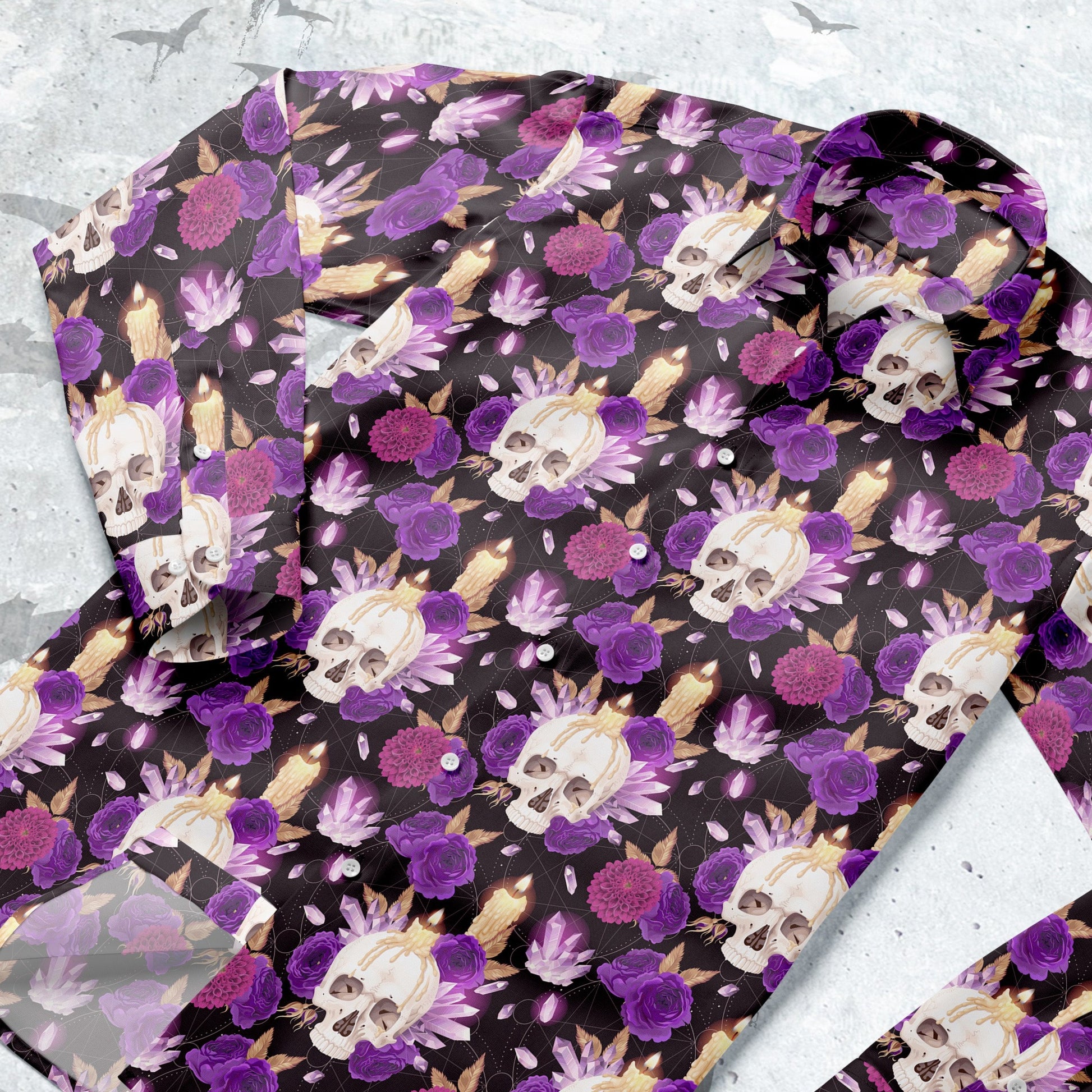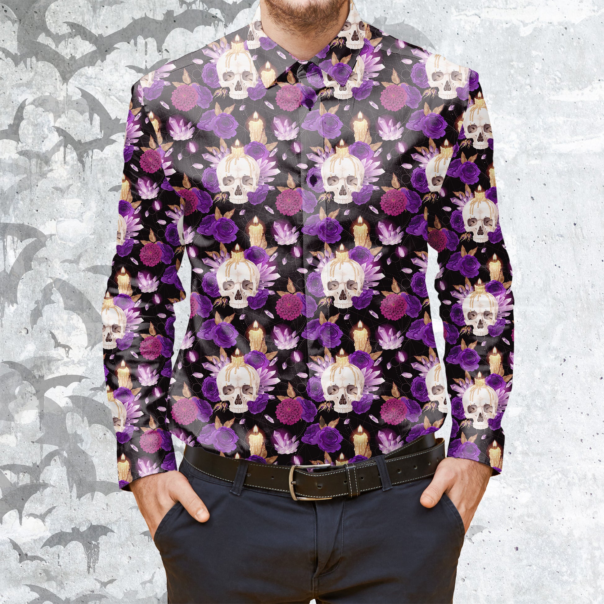 Crystal Skull and roses Long Sleeve buttun-up shirt