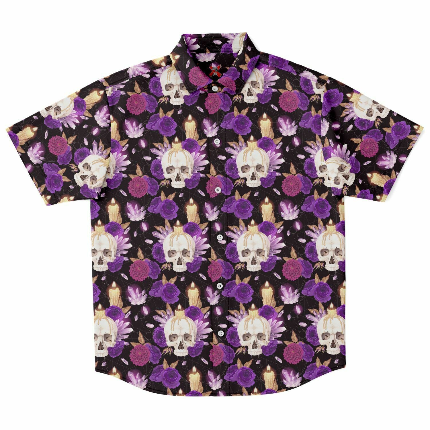 Crystals and roses short sleeve button-up shirt
