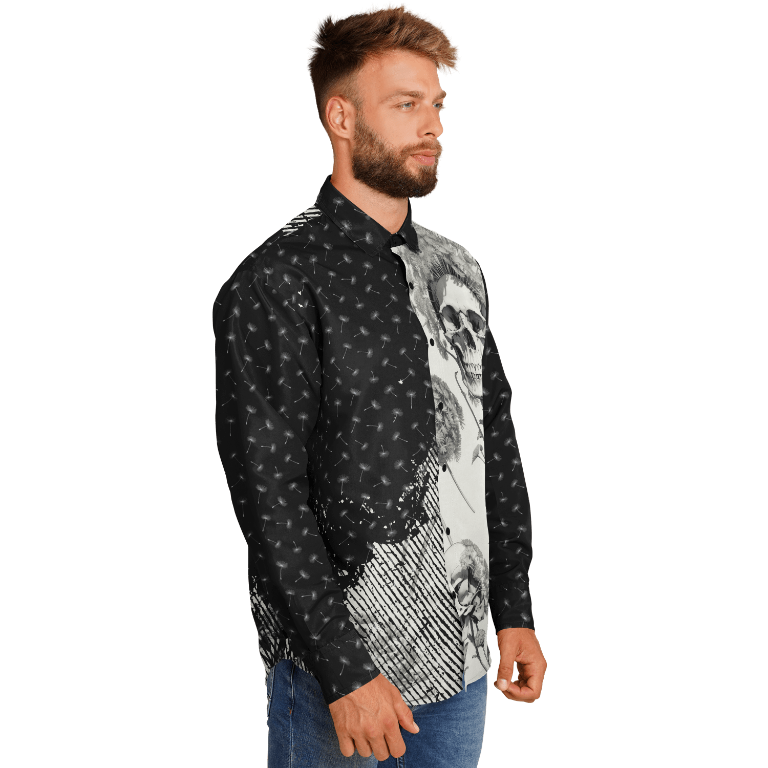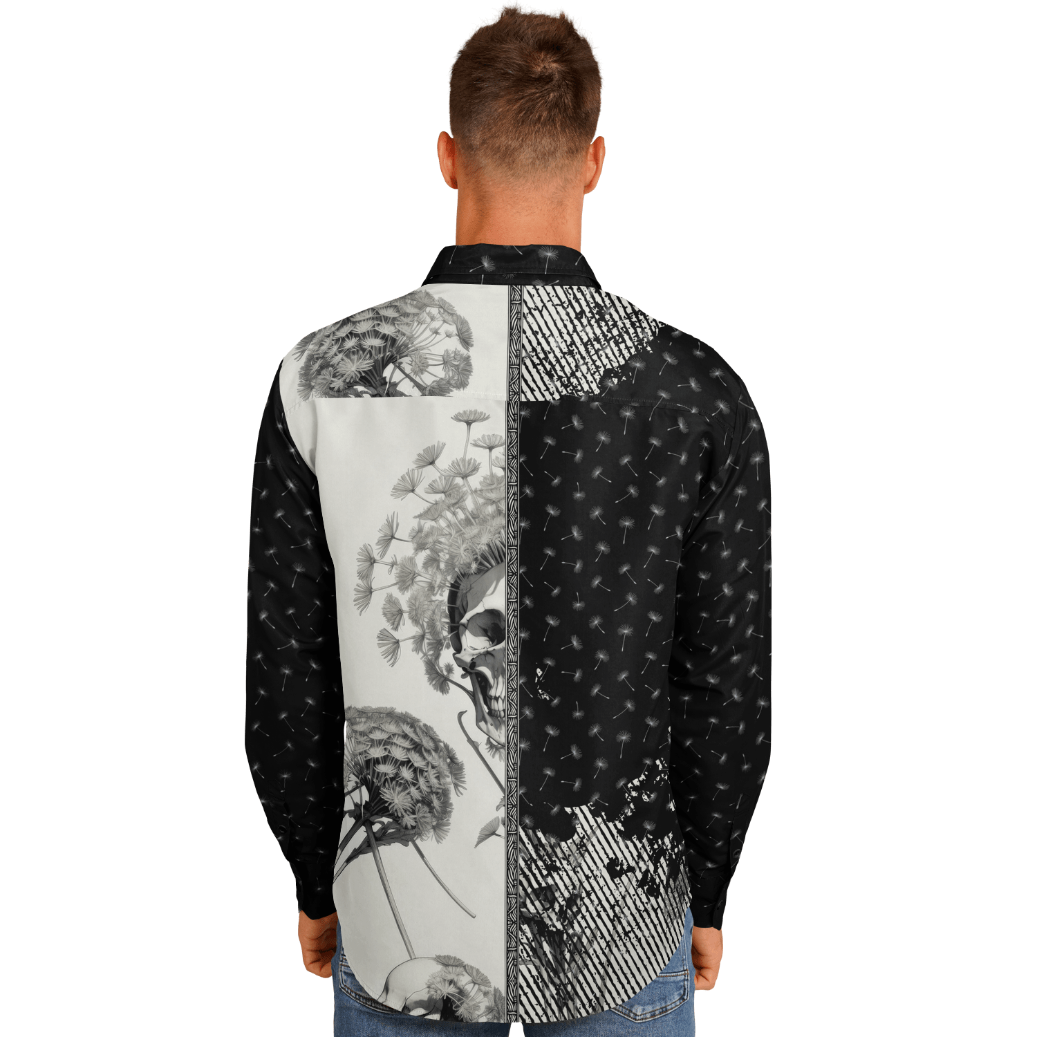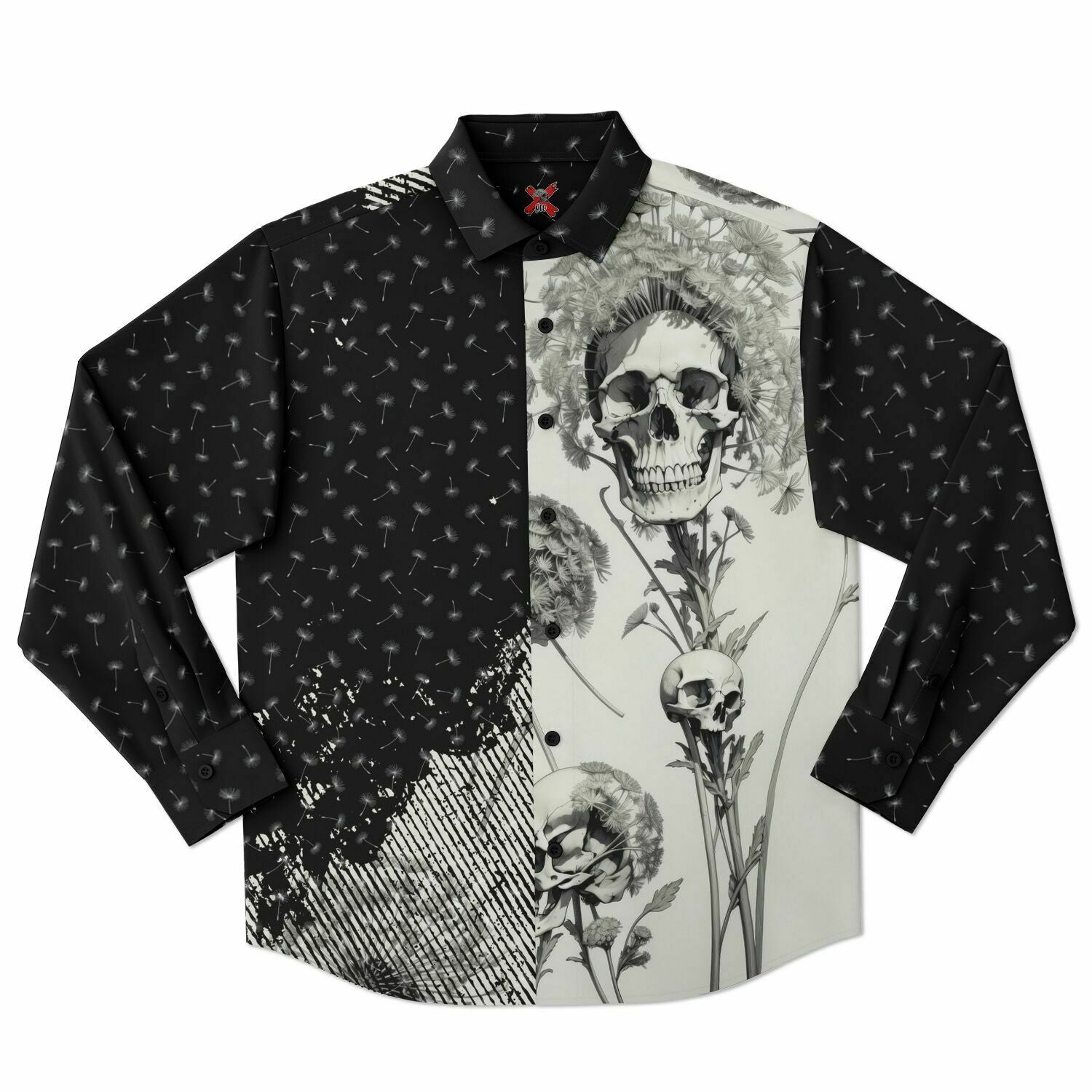 Dandelion and Skull Long Sleeve Button-up Shirt