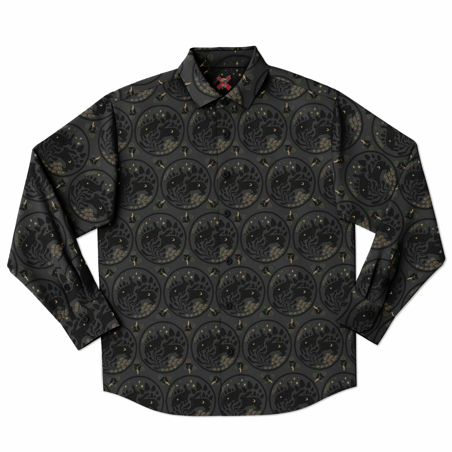 Stay cool with this fun printed long-sleeve button-up shirt. It comes in regular width and spread collar. Perfect for those dressier hot days. Always up-to-date Mystical Clothing.