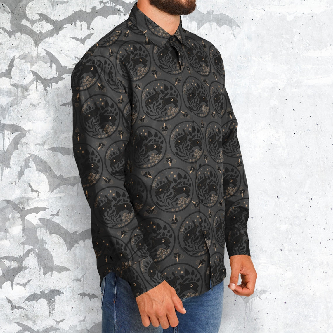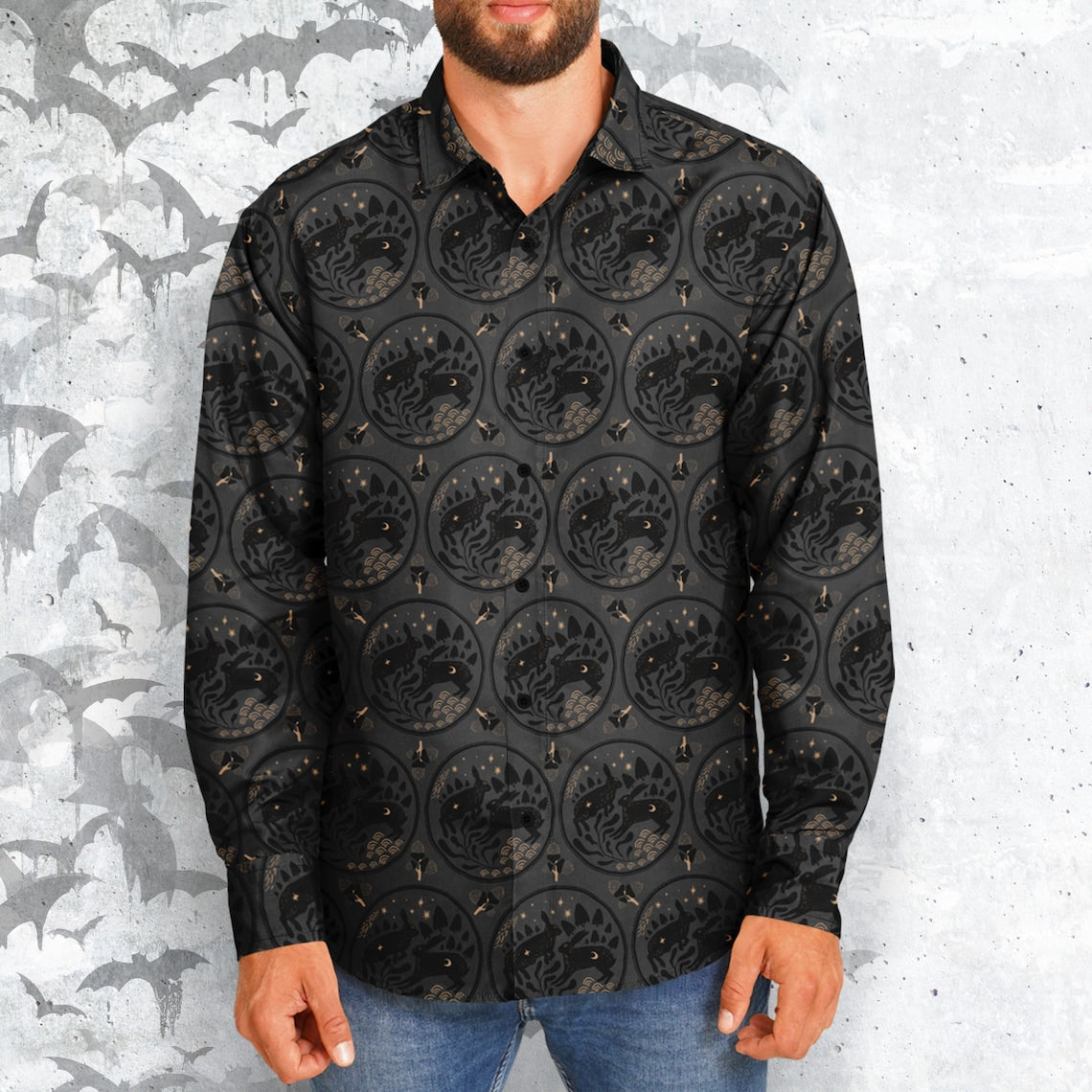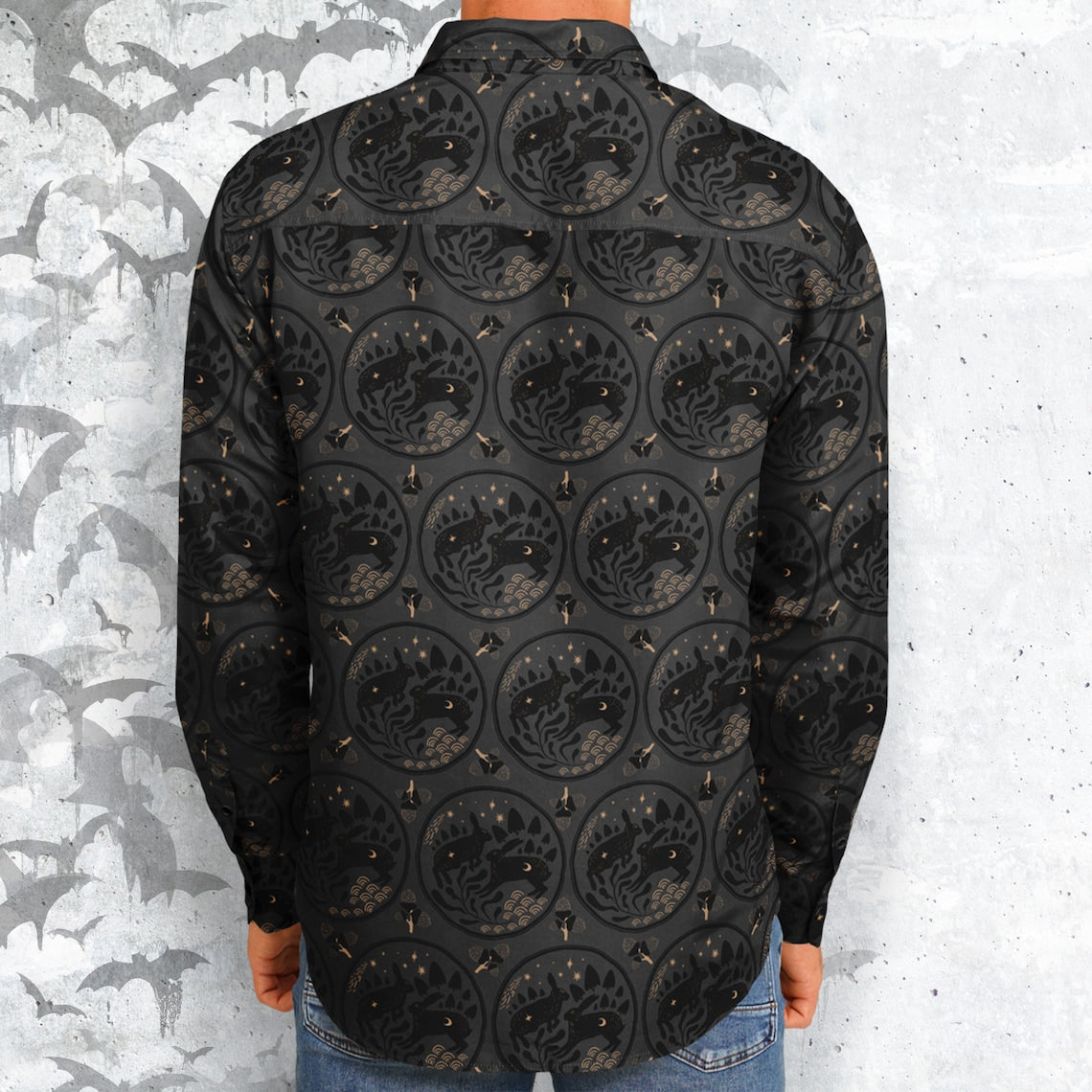 The Dark rabbit Long Sleeve Button-up Shirt is something special, crafted exclusively with NeoSkull's original artwork! Carefully printed, cut, and sewn with perfection, it'll add a unique edge to any alternative wardrobe. Make a bold statement with this inspiring piece of clothing!e.