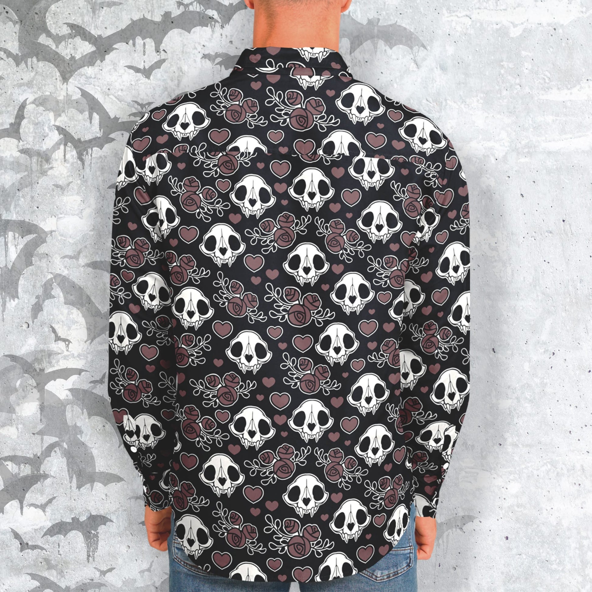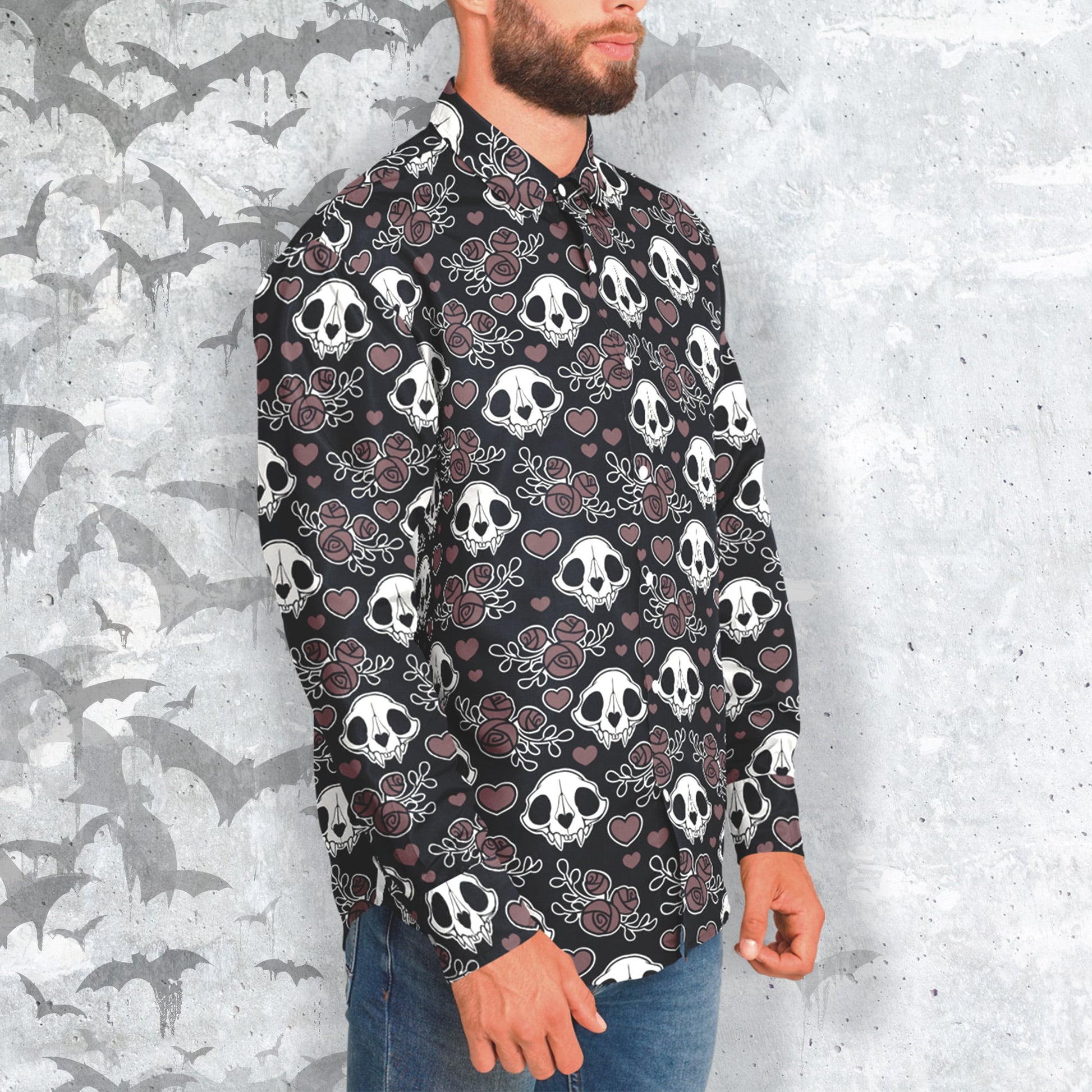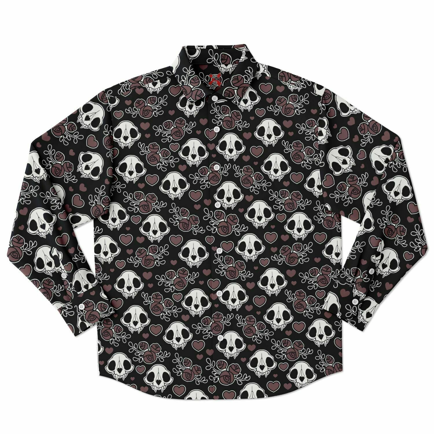 Deadly romantice long Sleeve Button-up Shirt features Exclusive, original artwork by NeoSkull. Each item is individually printed, cut, and sewn to ensure a flawless graphic with no imperfections. A great addition to Your alternative clothing wardrobe.