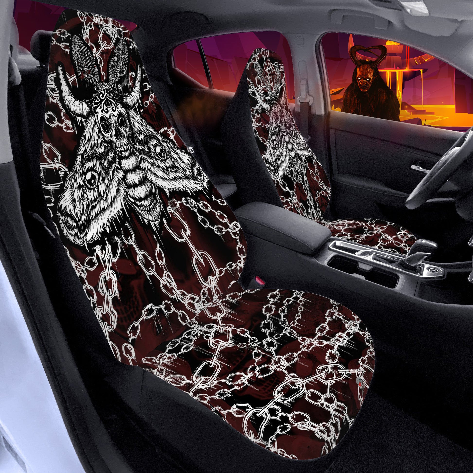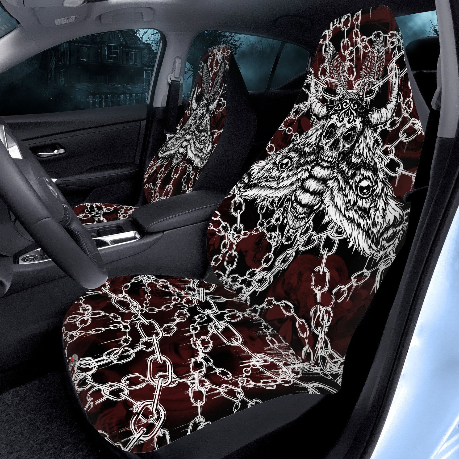 These Death Moth Decorative Car Seat Covers come as a set of 2 and are a great way to personalize your car. Not only do they beautify and add gothic style to your car interior, but they also have the ulterior advantage of protecting your seats from spills, stains, wear and tear and fading.