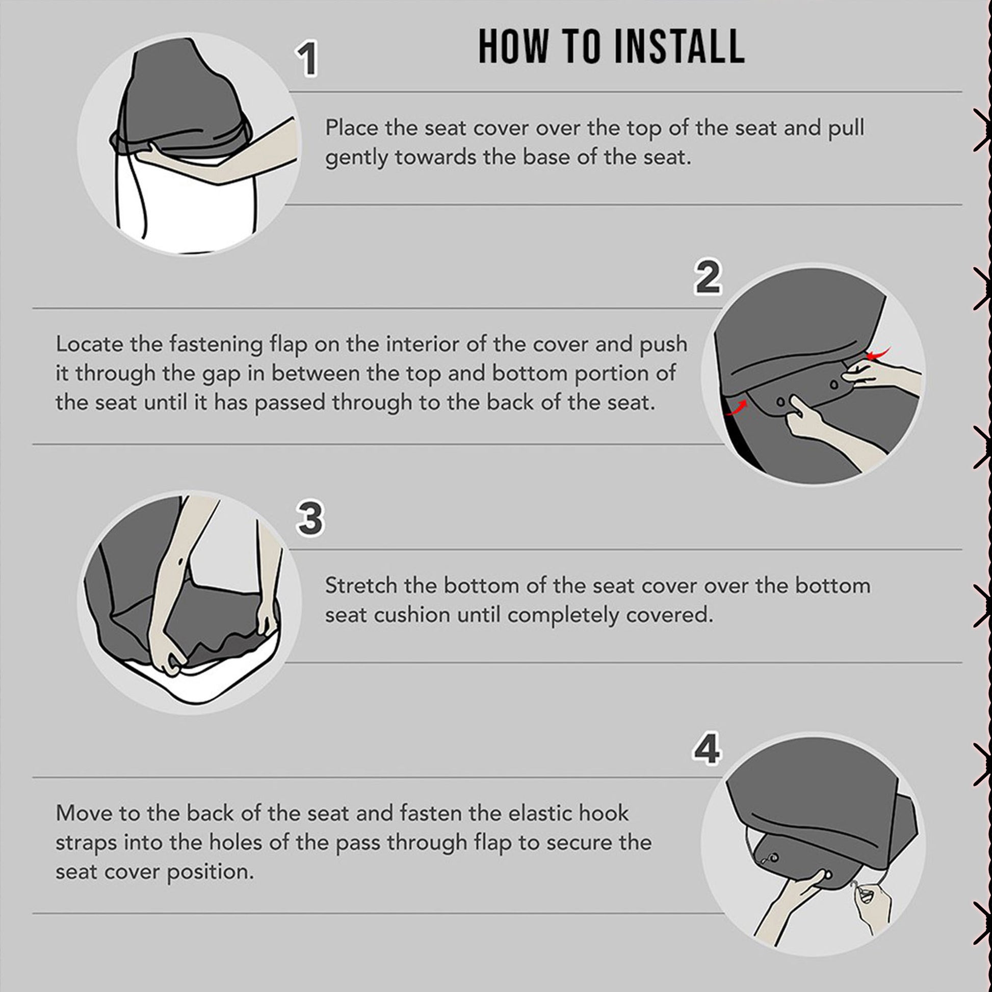 - Designed for quick and easy installation on most car and SUV bucket style seats – no tools required.