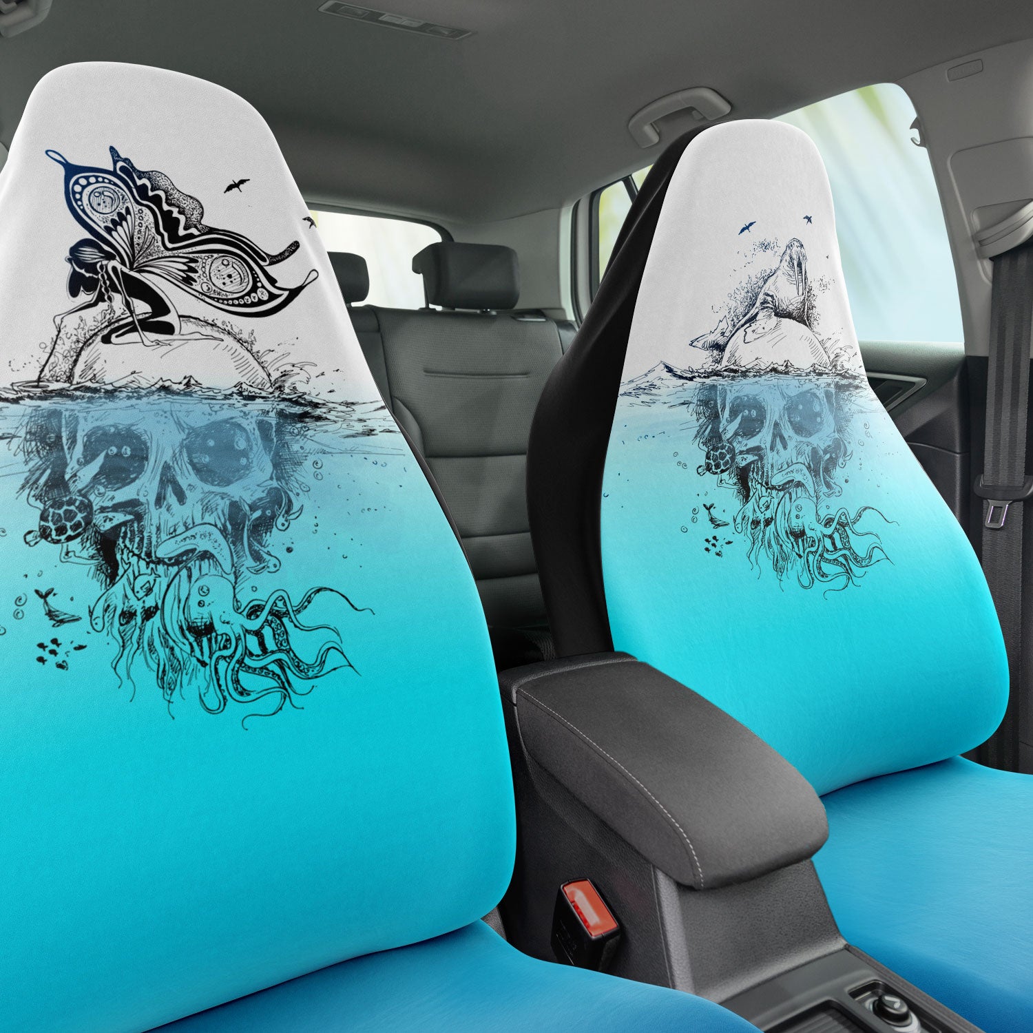 Distant Ocean Car seat Covers feature Exclusive, original artwork by NeoSkull inspired by pastel goth aesthetic. Each item is individually printed, cut, and sewn to ensure a flawless graphic with no imperfections. Perfect addition to your edgy girl car look.