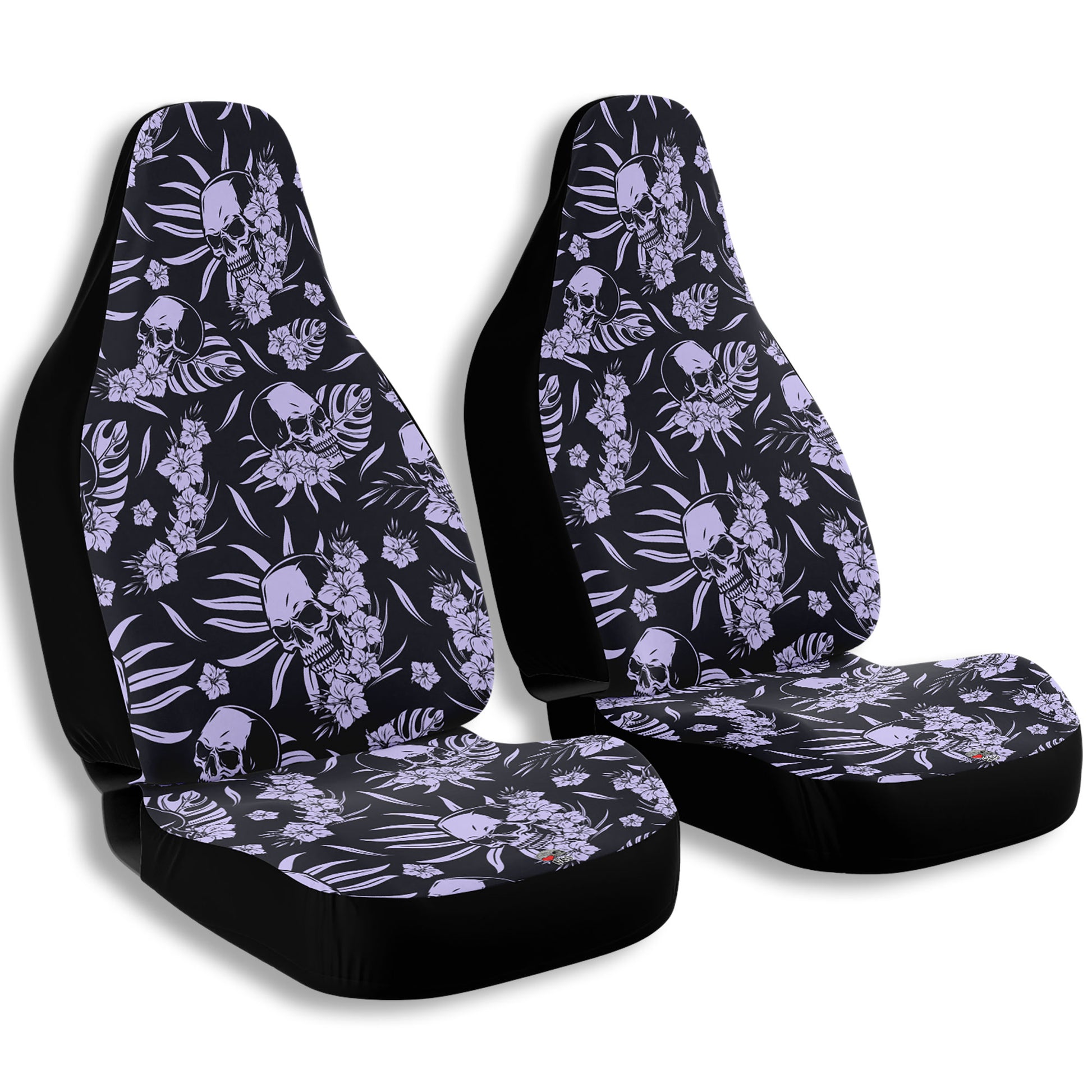 Exotic flowers and skull Car seat Covers feature Exclusive, original artwork by NeoSkull inspired by gothic aesthetic and tattoo art. Each item is individually printed, cut, and sewn to ensure a flawless graphic with no imperfections. Perfect addition to your horrid car look.