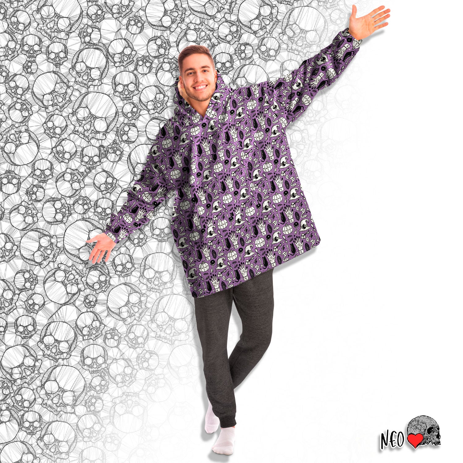 A "Snug Hoodie" is a one-size fits all wearable blanket. This snug hoodie is crafted from an outer silky smooth micro-mink polyester face. And for the inside we have an ultra soft microfiber fleece lining. Each panel is individually printed, cut and sewn to ensure a flawless graphic with no imperfections.