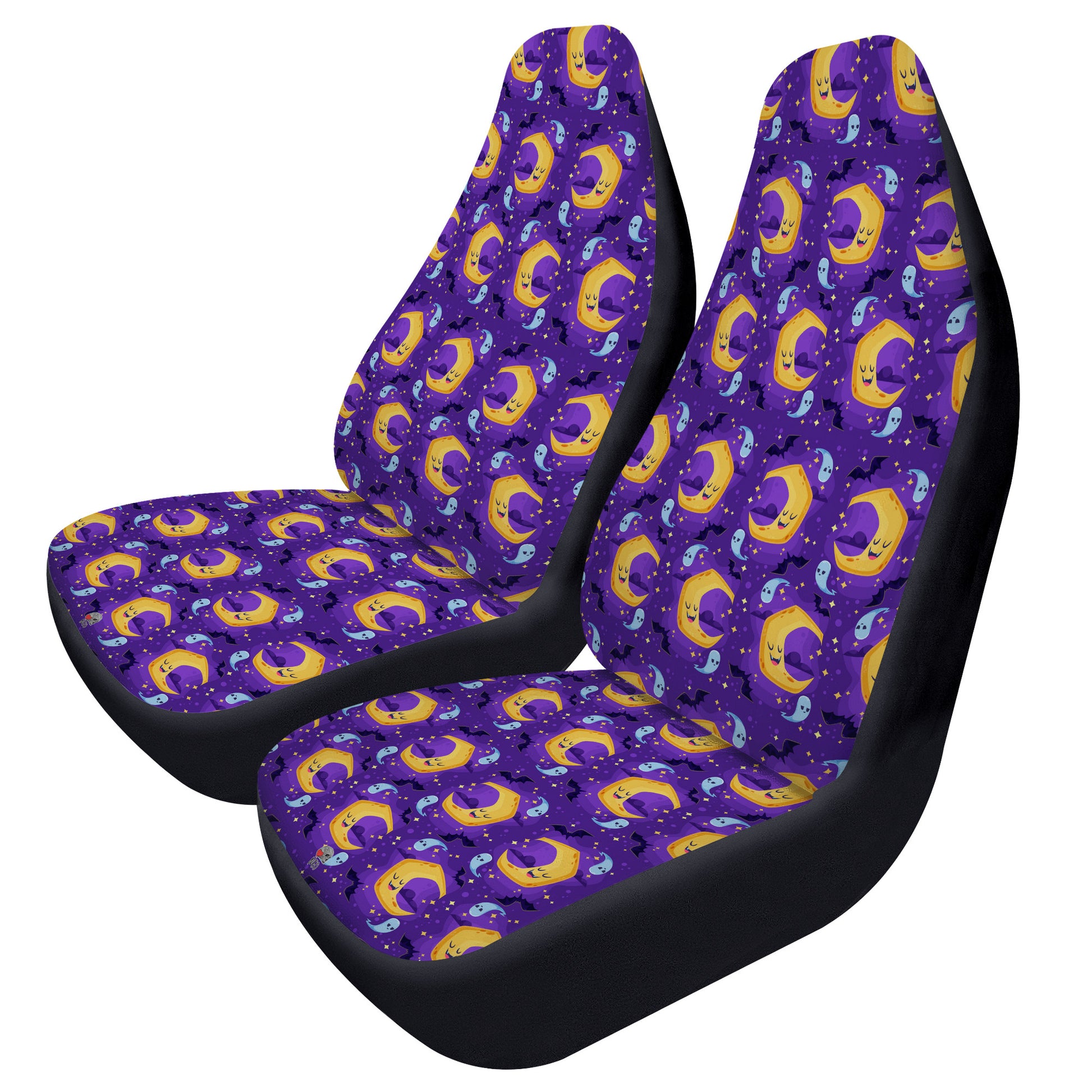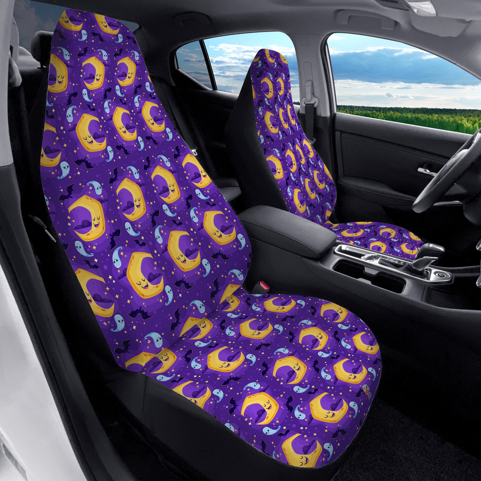 Happy Moon car seat covers feature Exclusive, original artwork by NeoSkull inspired by cartoon horror aesthetic . Each item is individually printed, cut, and sewn to ensure a flawless graphic with no imperfections. Perfect addition to your horrid car look.