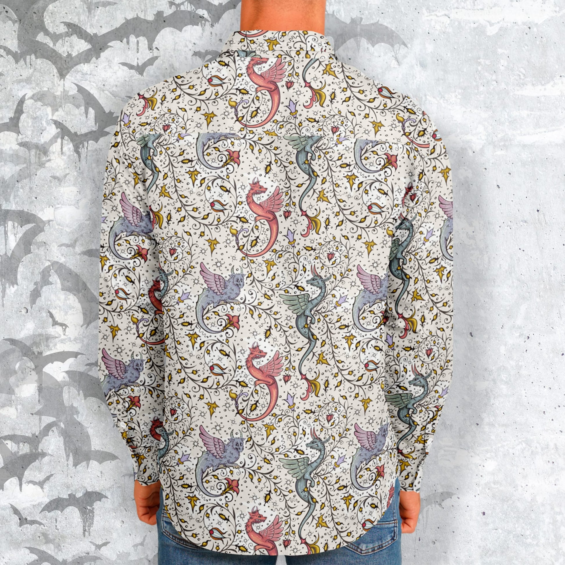 Be bold and show off your unique style with the Medieval Dragons Long Sleeve Button-up Shirt! This exclusive item is crafted with incredible attention to detail, featuring NeoSkull's original artwork and individually printed, cut, and sewn for a perfect finish. Add this must-have piece to your alternative wardrobe and wow your style admirers!