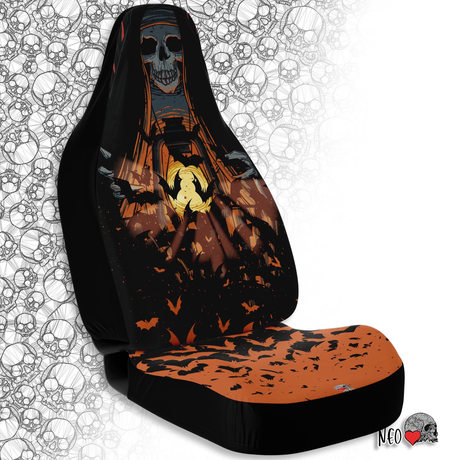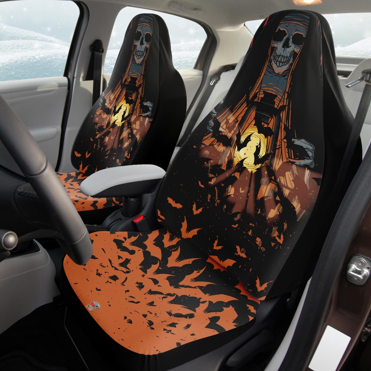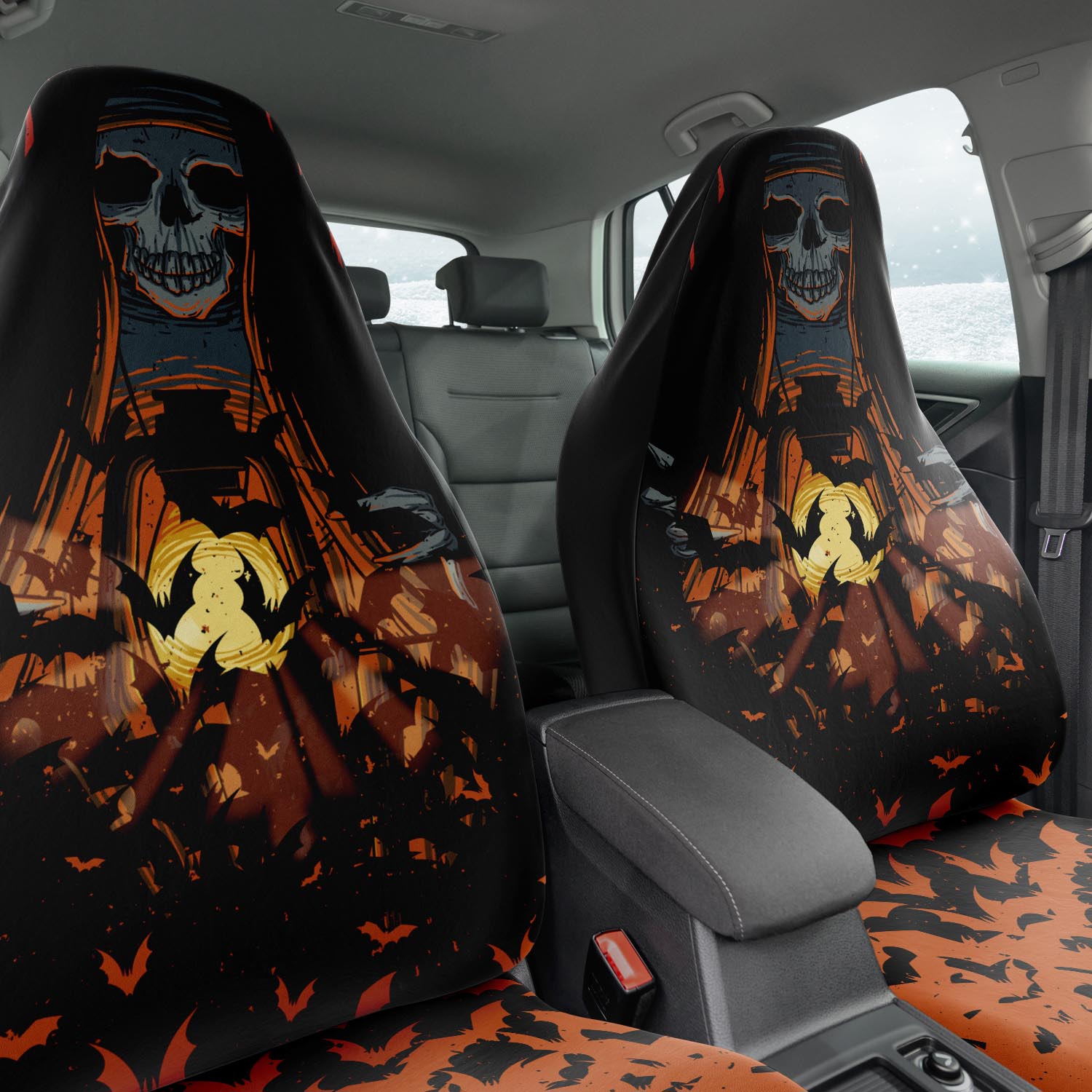 Otherworldly light Car seat Covers feature Exclusive, original artwork by NeoSkull inspired by pastel goth aesthetic. Each item is individually printed, cut, and sewn to ensure a flawless graphic with no imperfections. Perfect addition to your edgy girl car look.