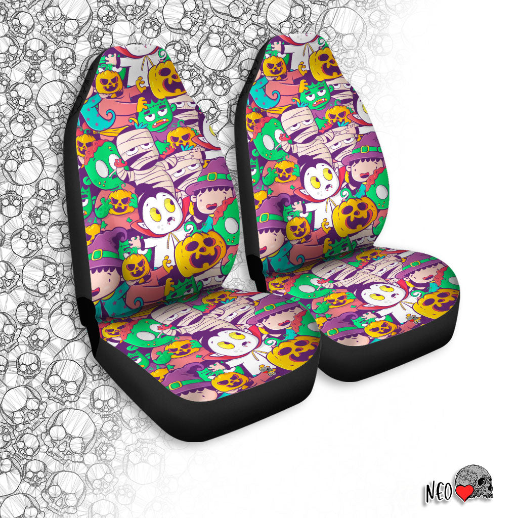 Spooky Crowd Car seat Covers feature Exclusive, original artwork by NeoSkull inspired by witchcraft aesthetic. Each item is individually printed, cut, and sewn to ensure a flawless graphic with no imperfections. Perfect addition to your spooky car look.