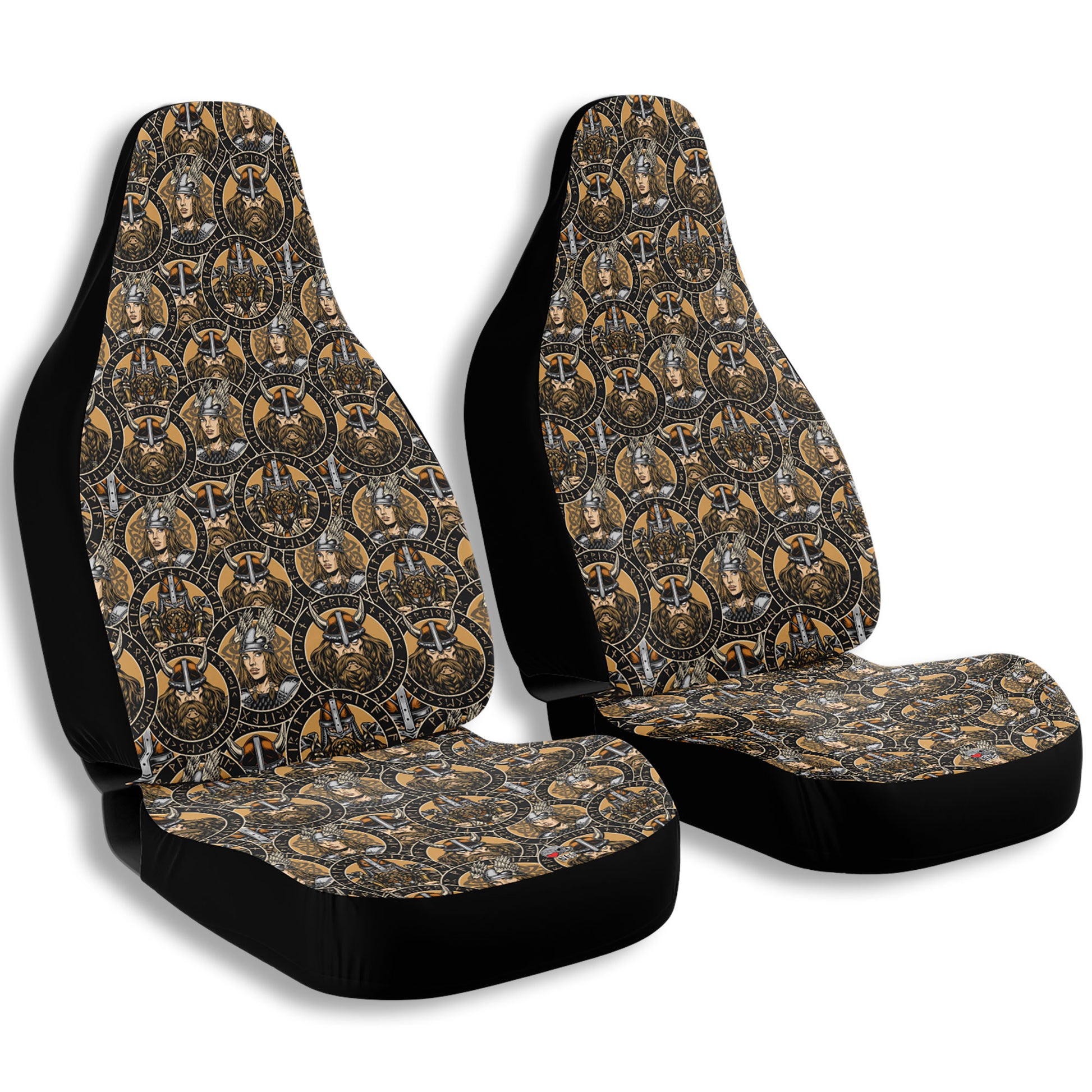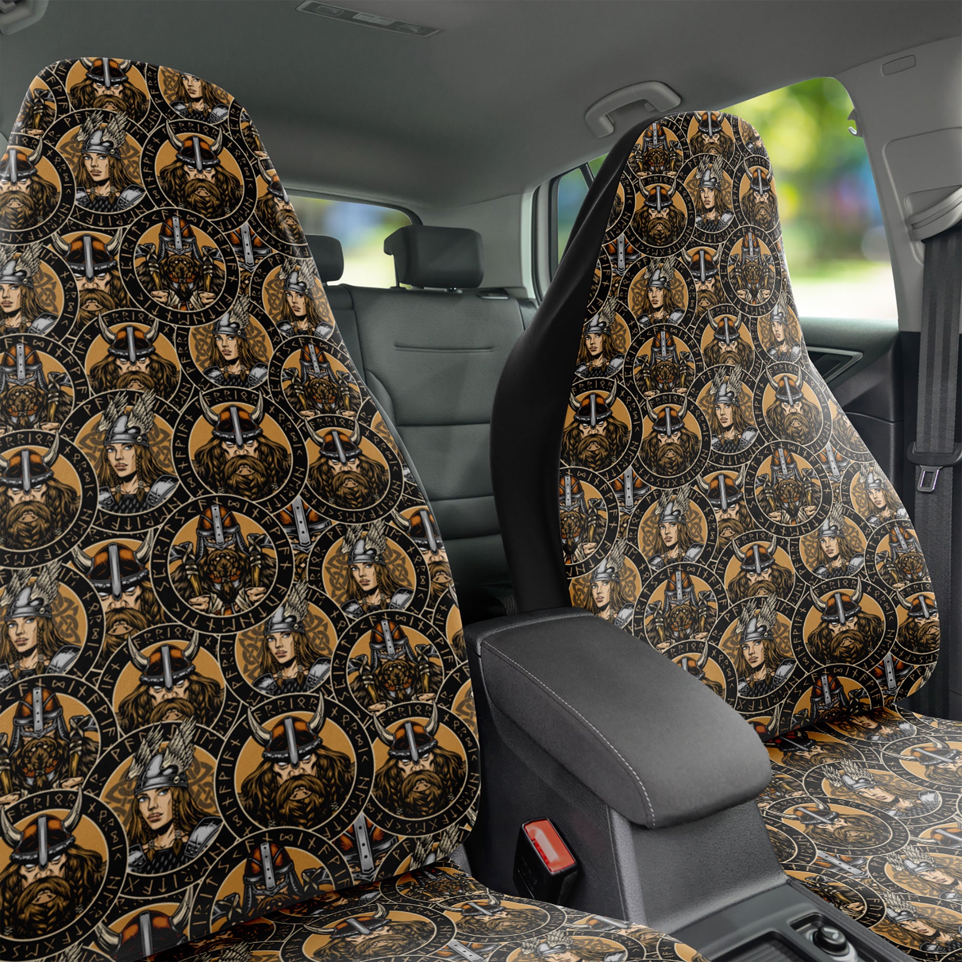 Vintage Viking and Valkyrie Car seat Covers features Exclusive, original artwork by NeoSkull inspired by Viking and Scandinavian mythology aesthetics. Each item is individually printed, cut, and sewn to ensure a flawless graphic with no imperfections. Perfect addition to your brutal car look.